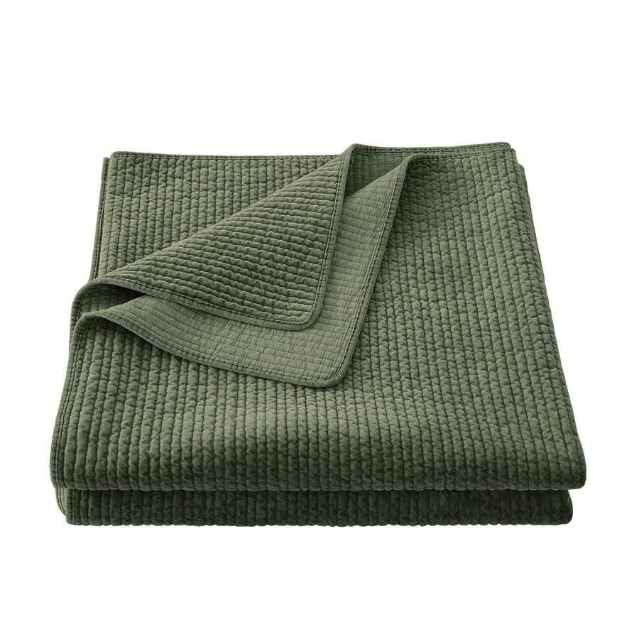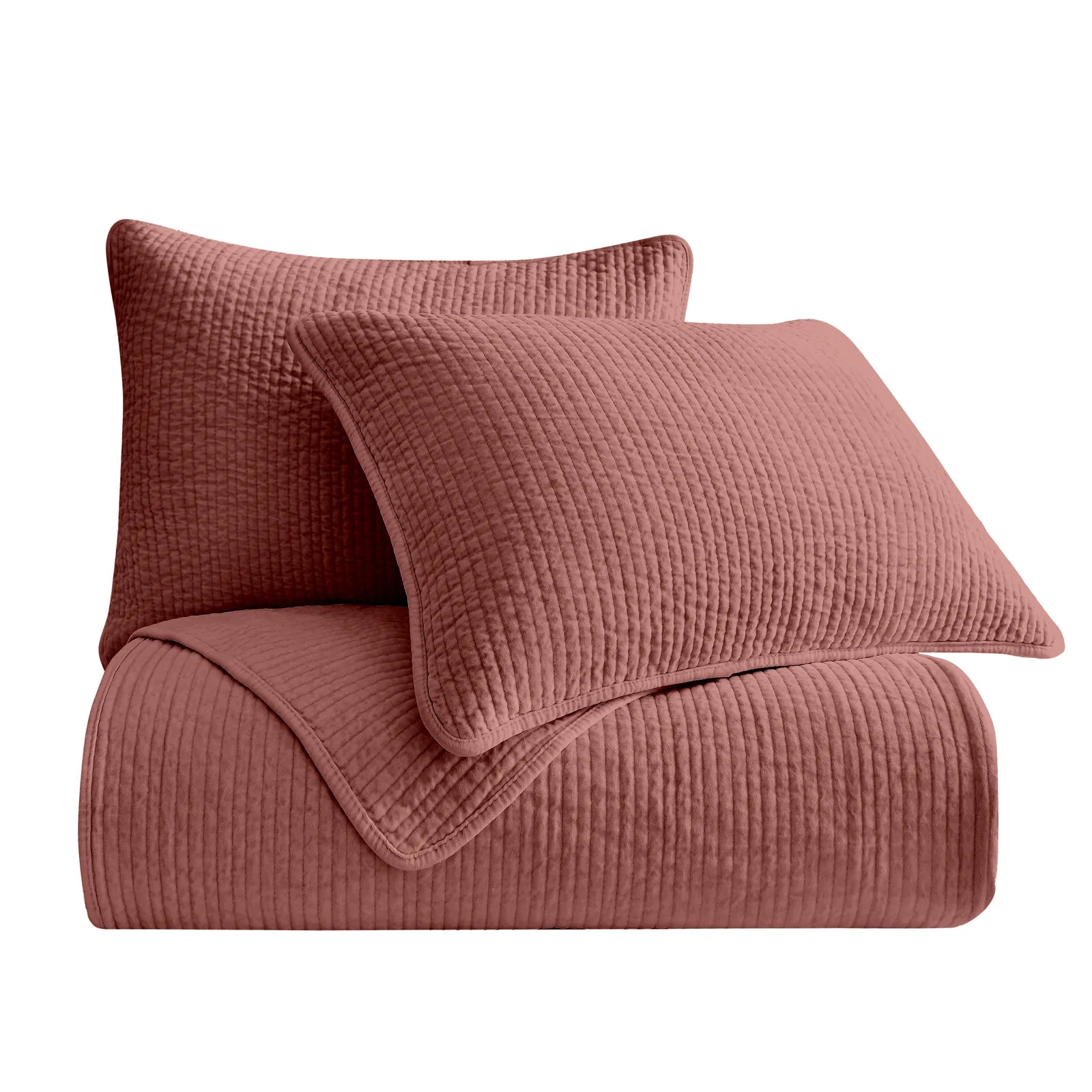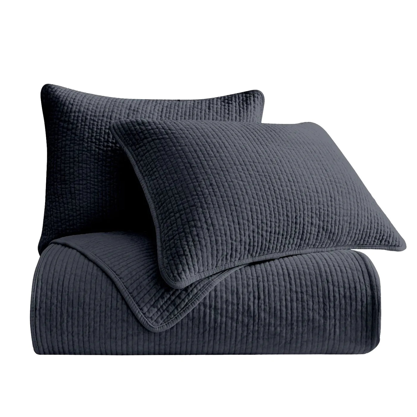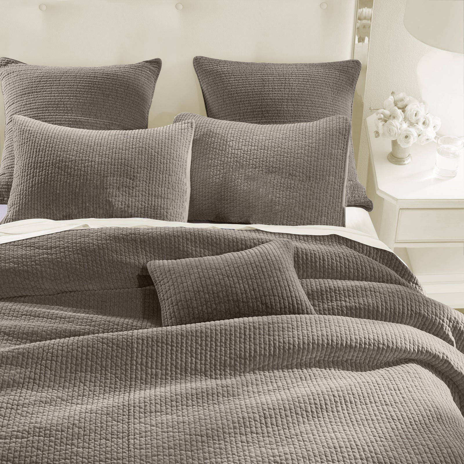 Experience luxurious comfort with this Aged Cotton Velvet Quilt Set. The quilt has a soft and cozy feel with a substantial hand and easy drape. Its channel quilting adds a modern touch, while its durability and ease of care make it perfect for year-round use. Choose from a variety of neutral and jewel tones to add a touch of elegance to any room