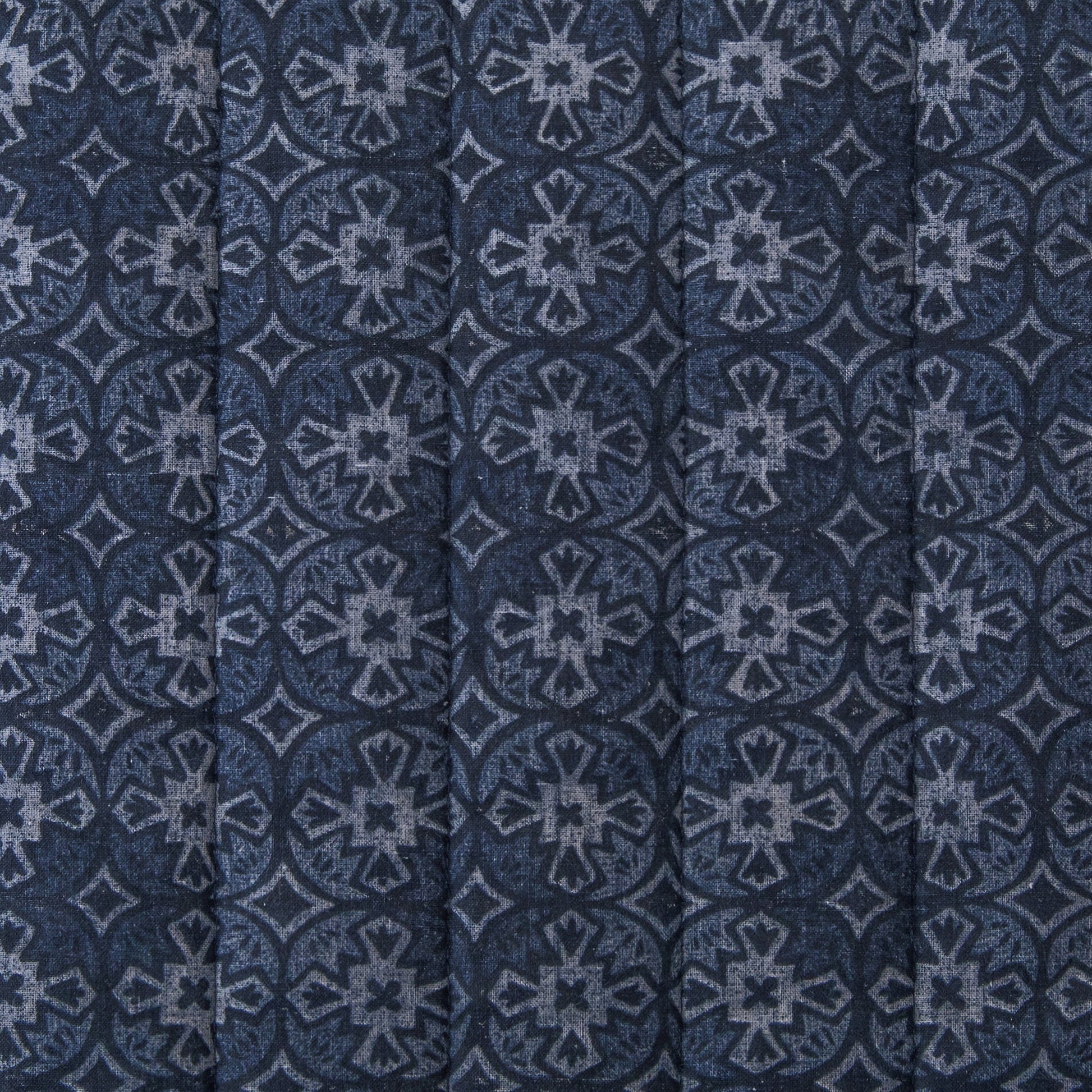 The Octavia Reversible Quilt Set enchants with stunning indigo blue shades. On one side, you'll find intricate medallion patterns, while the other side boasts delicate pointillist diamonds, exuding luxury no matter how you use it. It pairs exquisitely with our pure white 100% linen duvet covers.